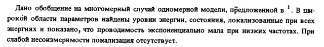Дано обобщение на многомерный случай одномерной модели, предложенной в 1. В широкой области параметров найдены уровни энергии, состояния, локализованные при всех энергиях и показано} что проводимость экспоненциально мала при низких частотах. При слабой несоизмеримости локализация отсутствует.