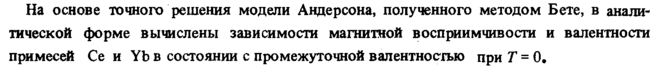 На основе точного решения модели Андерсона, полученного методом Бете, в аналитической форме вычислены зависимости магнитной восприимчивости и валентности примесей Се и Yb в состоянии с промежуточной валентностью при Τ = 0.
