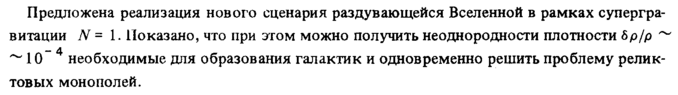 Предложена реализация нового сценария раздувающейся Вселенной в рамках супергравитации N = 1. Показано, что при этом можно получить неоднородности плотности δρ/ρ ~ ^ 10" 4 необходимые для образования галактик и одновременно решить проблему реликтовых монополей.