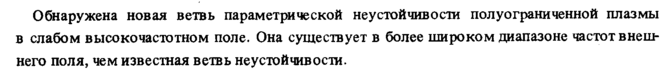 Обнаружена новая ветвь параметрической неустойчивости пол у ограниченной плазмы в слабом высокочастотном поле. Она существует в более широком диапазоне частот внешнего поля, чем известная ветвь неустойчивости.