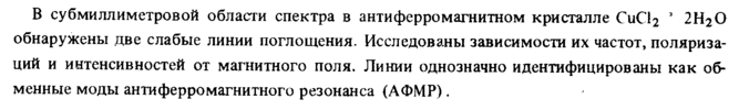 Обнаружение обменных мод антиферромагнитного резонанса CuCl2• 2H2O
