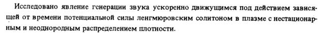 Исследовано явление генерации звука ускоренно движущимся под действием зависящей от времени потенциальной силы ленгмюровским солитоном в плазме с нестационарным и неоднородным распределением плотности.