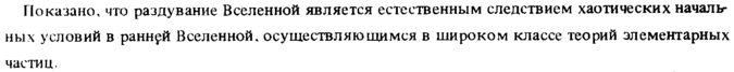 Показано, что раздувание Вселенной является естественным следствием хаотических начальных условий в ранней Вселенной, осуществляющимся в широком классе теорий элементарных
