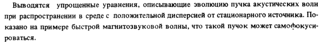 Выводятся упрощенные уравнения, описывающие эволюцию пучка акустических волн при распространении в среде с положительной дисперсией от стационарного источника. Показано на примере быстрой магнитозвуковой волны, что такой пучок может самофокусироваться.