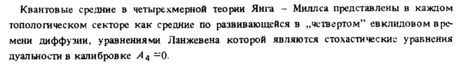 Квантовые средние в четырехмерной теории Янга Миллса представлены в каждом топологическом секторе как средние по развивающейся в „четвертом" евклидовом времени диффузии, уравнениями Ланжевена которой являются стохастические уравнения дуальности в калибровке А4 —0.