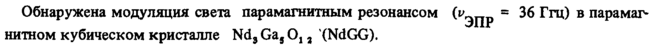 Обнаружена модуляция света парамагнитным резонансом (*^др = 36 Ггц) в парамагнитном кубическом кристалле Nd9 Ga5 0,3 (NdGG).