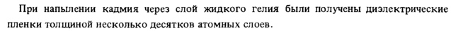 При напылении кадмия через слой жидкого гелия были получены диэлектрические пленки толщиной несколько десятков атомных слоев.