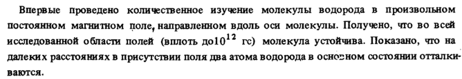 Впервые проведено количественное изучение молекулы водорода в произвольном постоянном магнитном поле, направленном вдоль оси молекулы. Получено, что во всей исследованной области полей (вплоть доЮ12 гс) молекула устойчива. Показано, что на далеких расстояниях в присутствии поля два атома водорода в основном состоянии отталкиваются.