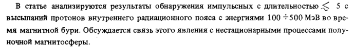 В статье анализируются результаты обнаружения импульсных с длительностью <С 5 с высыпаний протонов внутреннего радиационного пояса с энергиями 100 ^500 МэВ во время магнитной бури. Обсуждается связь этого явления с нестационарными процессами полуночной магнитосферы.