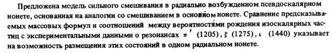 Предложена модель сильного смешивания в радиально возбужденном псевдоскалярном нонете, основанная на аналогии со смешиванием в основном нонете. Сравнение предсказываемых массовых формул и соотношений между вероятностями рождения изоскалярных частиц с экспериментальными данными о резонансах π (1205), f (1275), t (1440) указывает на возможность размещения этих состояний в одном радиальном нонете.