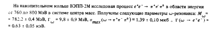 На накопительном кольце ВЭПП-2М исследован процесс е*е~ -* π*ππ° в области энергии о г 760 до 800 МэВ в системе центра масс. Получены следующие параметры cj-резонанса: Μ = = 782.2 ± 0,4 МэВ, = 9,8 ± 0,9 МэВ, σ^ίω -+ π+π' π0) = 1,39 ± Ο,ΐΟ мкб ., Г (ω е+е" = = 0,63 ± 0,05 кэВ.
