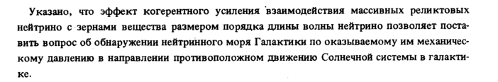 Указано, что эффект когерентного усиления взаимодействия массивных реликтовых нейтрино с зернами вещества размером порядка длины волны нейтрино позволяет поставить вопрос об обнаружении нейтринного моря Галактики по оказываемому им механическому давлению в направлении противоположном движению Солнечной системы в галактике.