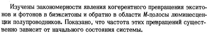 Изучены закономерности явления когерентного превращения эксито-нов и фотонов в биэкситоны и обратно в области Λί-полосы люминесценции полупроводников. Показано, что частота этих превращений существенно зависит от начального состояния системы.