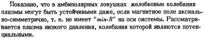 Показано, что в амбиполярных ловушках желобковые колебания плазмы могут быть устойчивыми даже, если магнитное поле аксиально-симметрично, т. е. не имеет "min-B" на оси системы. Рассматривается плазма низкого давления, колебания которой являются потенциальными.
