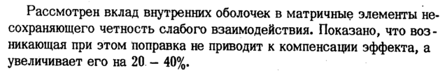 Рассмотрен вклад внутренних оболочек в матричные элементы не-сохраняющего четность слабого взаимодействия. Показано, что возникающая при этом поправка не приводит к компенсации эффекта, а увеличивает его на 20 40%.