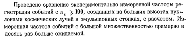 Проведено сравнение экспериментально измеренной частоты регистрации событий с ns ^ 100, созданных на больших высотах нук^ лонами космических лучей в эмульсионных стопках, с расчетом. Измеренная частота событий с большой множественностью примерно в десять раз больше ожидаемой.