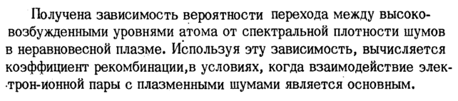 Получена зависимость вероятности перехода между высоковозбужденными уровнями атома от спектральной плотности шумов в неравновесной плазме. Используя эту зависимость, вычисляется коэффициент рекомбинации,в условиях, когда взаимодействие элек-•трон-йонной пары с плазменными шумами является основным.