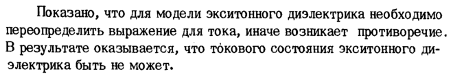 Показано, что для модели экситонного диэлектрика необходимо переопределить выражение для тока, иначе возникает противоречие. В результате оказывается, что токового состояния экситонного диэлектрика быть не может.