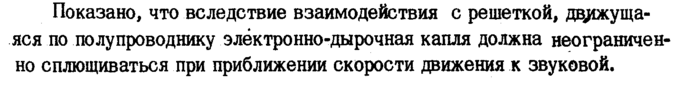 Показано, что вследствие взаимодействия с решеткой, дерущаяся по полупроводнику электронно-дырочная капля должна неограниченно сплющиваться при приближении скорости движения к звуковой.
