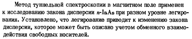 Применение туннельной спектроскопии в магнитном поле для исследования закона дисперсии сильно легированного n-InAs