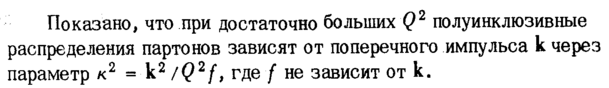 Показано, что при достаточно больших Q2 полуинклюзивные распределения партонов зависят от поперечного импульса к через параметр к2 = k2 /Q2f, где / не зависит от к.