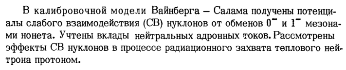 В калибровочной модели Вайнберга Салама получены потенциалы слабого взаимодействия (СВ) нуклонов от обменов 0~ и 1" мезонами нонета. Учтены вклады нейтральных адронных токов. Рассмотрены эффекты СВ нуклонов в процессе радиационного захвата теплового нейтрона протоном.