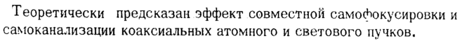 Теоретически предсказан эффект совместной самофокусировки и самоканализации коаксиальных атомного и светового пучков.