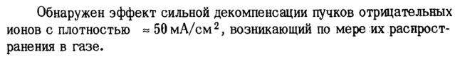 Обнаружен эффект сильной декомпенсации пучков отрицательных ионов с плотностью » 50 мА/см2, возникающий по мере их распространения в газе.