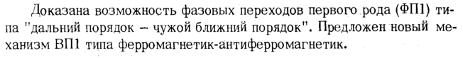 Доказана возможность фазовых переходов первого рода (ФП1) типа "дальний порядок чужой ближний порядок". Предложен новый механизм ВШ типа ферромагнетик-антиферромагнетик.