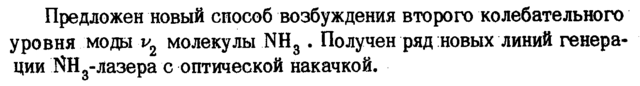 Предложен новый способ возбуждения второго колебательного уровня моды v2 молекулы NH3. Получен ряд новых линий генерации Ν Η 3лазера с оптической накачкой.