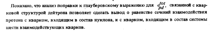 Показано, что анализ поправки к глауберовскому выражению для </^f связанной с кварков ой структурой дейтрона позволяет сделать вывод о равенстве сечений взаимодействия протона с кварком, входящим в состав нуклона, и с кварком, входящим в состав системы шести взаимодействующих кварков.