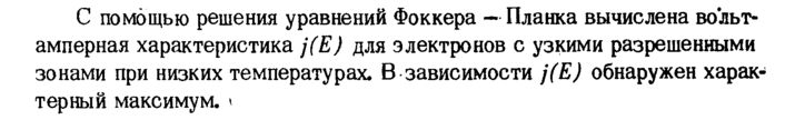 С помощью решения уравнений Фоккера Планка вычислена вольт-амперная характеристика j(E) для электронов с узкими разрешенными зонами при низких температурах. В зависимости j(E) обнаружен характерный максимум, ι