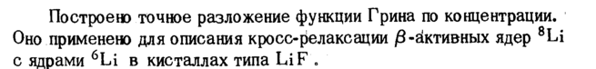 Построено точное разложение функции Грина по концентрации. Оно применено для описания кросс-релаксации β-Активных ядер 8Ы с ядрами 6Li в кисталлах типа LiF „