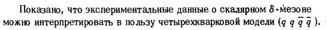 Показано, что экспериментальные данные о скалярном δ-Сезоне можно интерпретировать в пользу четырехкварковой модели (q qqq).