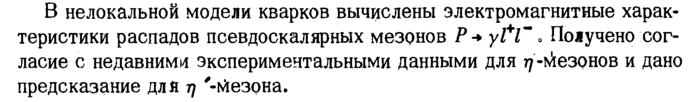 В нелокальной модели кварков вычислены электромагнитные характеристики распадов псевдоскалярных мезонов P+yfC, Получено согласие с недавними экспериментальными данными для ту-^езонов и дано предсказание для η '-гЛезона.