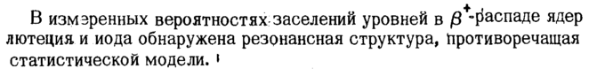В измеренных вероятностях-заселений уровней в β -распаде ядер лютеция и иода обнаружена резонансная структура, Противоречащая статистической модели. '