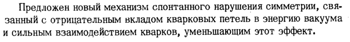 Предложен новый механизм спонтанного нарушения симметрии, связанный с отрицательным вкладом кварковых петель в энергию вакуума и сильным взаимодействием кварков, уменьшающим этот эффект.