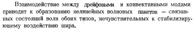 Взаимодействие между дрейфовыми и конвективными модами приводит к образованию нелинейных волновых пакетов — связанных состояний волн обоих типов, нечувствительных к стабилизирующему воздействию шира.