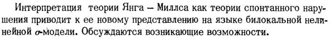 Интерпретация теории Янга — Миллса как теории спонтанного нарушения приводит к ее новому представлению на языке билокальной нелинейной σ-модели. Обсуждаются возникающие возможности.