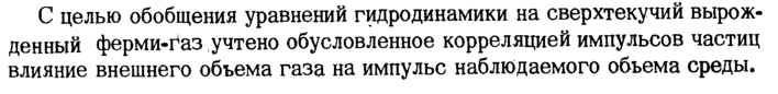 С целью обобщения уравнений гидродинамики на сверхтекучий вырожденный ферми-г^аз учтено обусловленное корреляцией импульсов частиц влияние внешнего объема газа на импульс наблюдаемого объема среды.
