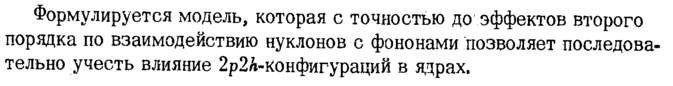 Формулируется модель, которая с точностью до эффектов второго порядка по взаимодействию нуклонов с фононами позволяет последовательно учесть влияние 2р2А-конфигураций в ядрах.