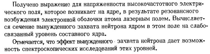 Получено выражение для напряженности высокочастотного электрического поля, которое возникает на ядре, в результате резонансного возбуждения электронной оболочки атома лазерным полем. Вычисляется сечение вынужденного захвата нейтрона ядром в этом поле на слабо' связанный уровень составного ядра. Отмечается, что эффект вынужденного захвата нейтрона дает возможность спектроскопических исследований этих уровней.