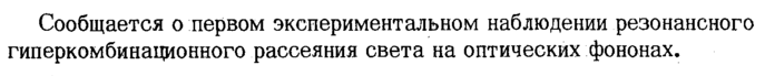 Сообщается о первом экспериментальном наблюдении резонансного гиперкомбинационного рассеяния света на оптических фононах.
