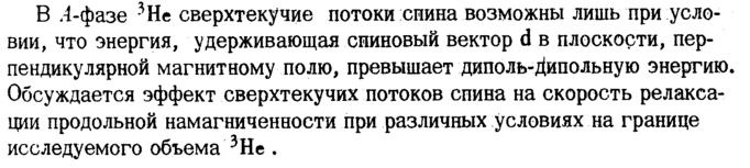 В Л-фазе Не сверхтекучие потоки спина возможны лишь при условии, что энергия, удерживающая спиновый вектор d в плоскости, перпендикулярной магнитному полю, превышает диполь-Дипольную энергию. Обсуждается эффект сверхтекучих потоков спина на скорость релаксации продольной намагниченности при различных условиях на границе исследуемого объема 3Не .