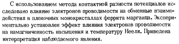 С использованием метода контактной разности потенциалов исследовано влияние электронов проводимости на обменные взаимодействия в пленочных монокристаллах феррита марганца. Экспериментально установлен эффект влияния электронов проводимости на намагниченность насыщения и температуру Нееля. Приведена интерпретация наблюдаемого явления.