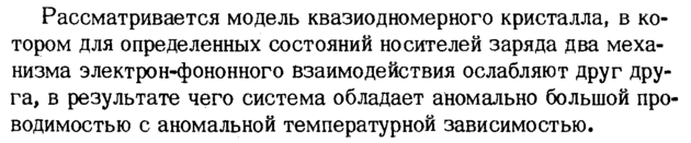 Рассматривается модель квазиодномерного кристалла, в котором для определенных состояний носителей заряда два механизма электрон-фононного взаимодействия ослабляют друг друга, в результате чего система обладает аномально большой проводимостью с аномальной температурной зависимостью.