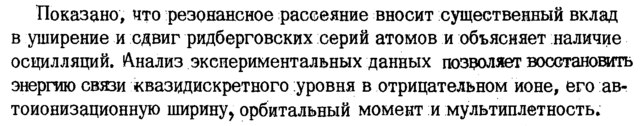 Показано, что резонансное рассеяние вносит существенный вклад в уширение и сдвиг ридберговских серий атомов и объясняет наличие осцилляций. Анализ экспериментальных данных позволяет восстановить энергию связи квазвдискретного уровня в отрицательном ионе, его автоионизационную ширину? орбитальный момент и мультиплетность.