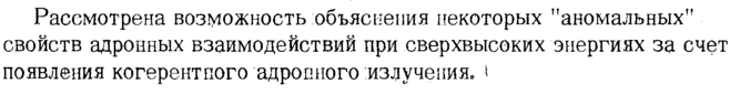 Рассмотрена возможность объяснения некоторых "аномальных" свойств адронных взаимодействий при сверхвысоких энергиях за счет появления когерентного адрошюго .излучения, ι