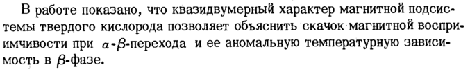 В работе показано, что квазидвумерный характер магнитной подсистемы твердого кислорода позволяет объяснить скачок магнитной восприимчивости при а-/3-перехода и ее аномальную температурную зависимость в β-фаз е.