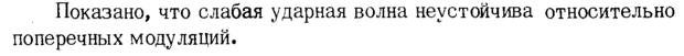 Показано, что слабая ударная волна неустойчива относительно поперечных модуляций.